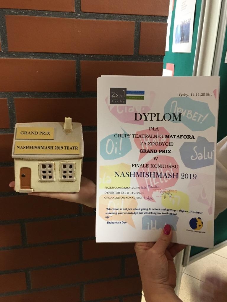 Grupa teatralna Matafora otrzymała nagrodę Grand Prix za widowiskową prezentację musicalu Notre Dame de Paris w języku angielskim podczas finału XVIII Wojewódzkiego Konkursu na Występ Sceniczny NaszMishMasz, który odbył się 14.11.2019 w Zespole Szkół nr 1 w Tychach. Do finału zakwalifikowano 12 zespołów z różnych szkół średnich województwa śląskiego. 1 miejsce zajęła grupa TZN Częstochowa , 2 miejsce LO Bieruń, 3 miejsce LO Bieruń.