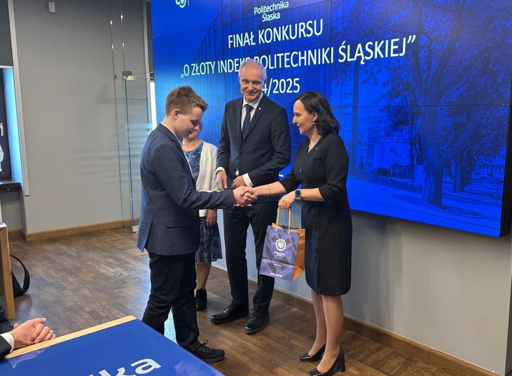 Z ogromną satysfakcją informujemy, że uczeń naszej szkoły Dominik Nowak z klasy 2eT uzyskał tytuł laureata Ogólnopolskiego Konkursu „O Złoty Indeks Politechniki Śląskiej 2024/2025” z fizyki. Konkurs odbywał się w czterech dziedzinach: chemia, fizyka, informatyka i matematyka.