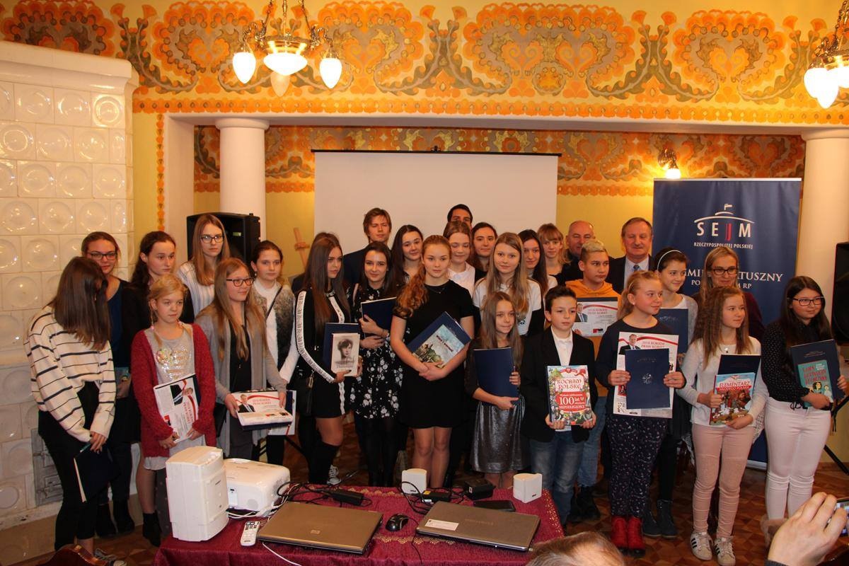 Uroczyste ogłoszenie wyników i rozdanie nagród odbyło się w dworku w Moszczanicy w setną rocznicę wydarzenia – w środę 28 listopada 2018 r. Uczeń naszej szkoły, Krzysztof Bizoń z klasy 3bT, zajął pierwsze miejsce w kategorii esej – napisał on pracę pt. „Po co kobiety w parlamencie?”, w której podsumował pracę pierwszych polskich parlamentarzystek z Narodowej Organizacji Kobiet. Krzyśka nagrodzono książką historyczną oraz zaproszeniem na wycieczkę do Warszawy, w ramach której odbędzie się zwiedzanie Sejmu i Muzeum Powstania Warszawskiego.
