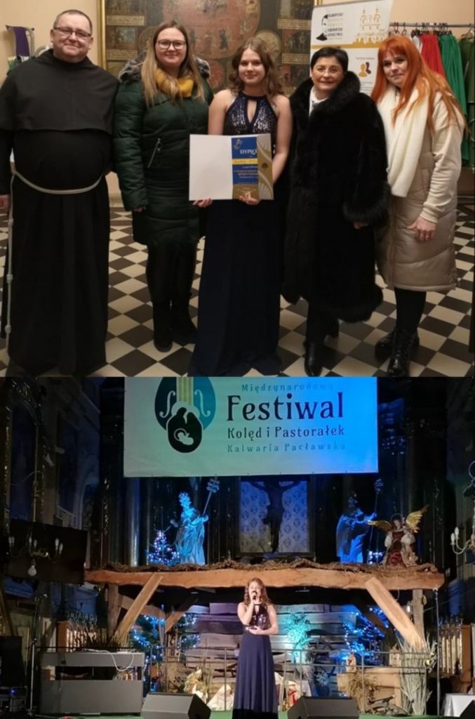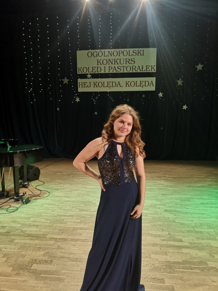 Nasza znakomita wokalistka, uczennica klasy 2bLO po raz kolejny udowodniła, że potrafi się odnaleźć w każdym repertuarze. Tym razem wzięła udział w przeglądach kolęd i pastorałek.