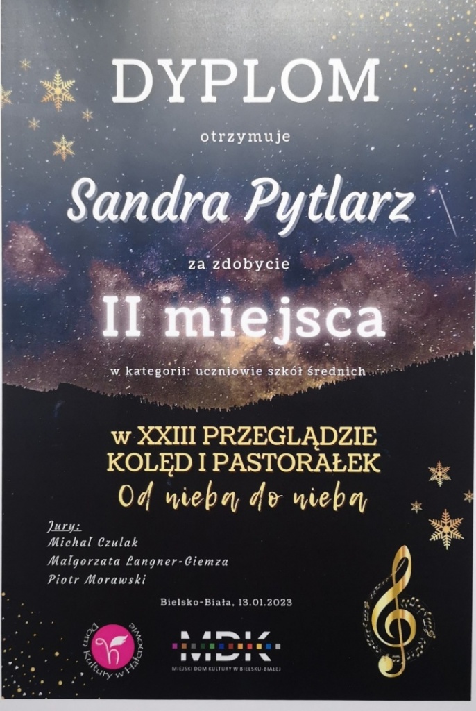 - II miejsce w XXIII Przeglądzie Kolęd i Pastorałek "Od nieba do nieba" Bielsko Biała 2023
