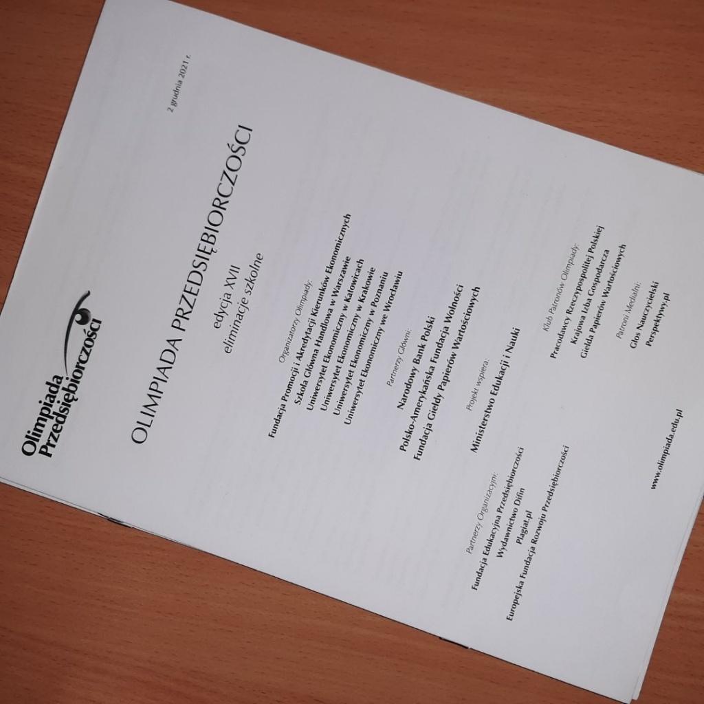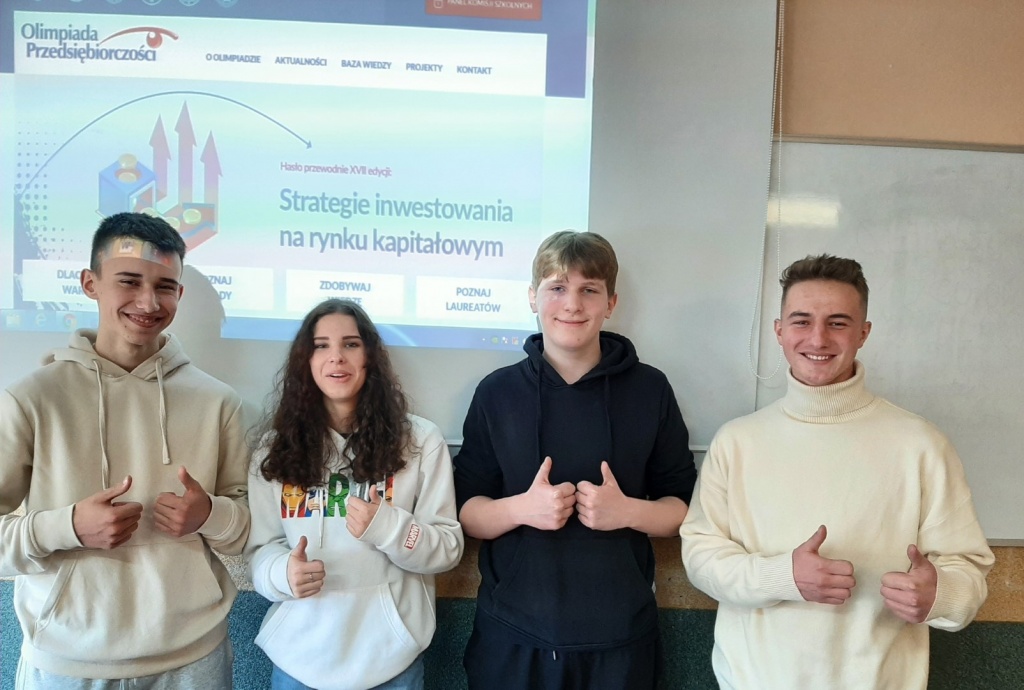 Z pyjemnością informujemy, że grupa uczniów z naszej szkoły w składzie: Maciej Ziółkowski, Jakub Foja i Hubert Dziedzic z klasy 3eT oraz Katarzyna Juraszek, Michał Szczotka i Karol Śleziak z klasy 2dT zakwalifikowało się do drugiego etapu Olimpiady Przedsiębiorczości. Zawody odbędą się 3 marca br. równocześnie w pięciu okręgach w Polsce. Na uczestników czekają atrakcyjne nagrody rzeczowe i ułatwienia w postępowaniu kwalifikacyjnym do szkół wyższych.Młodym ekonomistom życzymy powodzenia i awansu do centralnego etapu olimpiady!