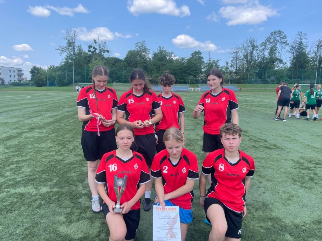 W finale nasz zespół musiał uznać wyższość drużyny GKS Tychy, zajmując ostatecznie drugie miejsce w województwie. Najlepszą zawodniczką turnieju została uczennica naszej szkoły Dominika Adamus. To ogromny sukces i powód do dumy – gratulujemy zawodniczkom i opiekunowi drużyny Panu Michałowi Zapartowi.