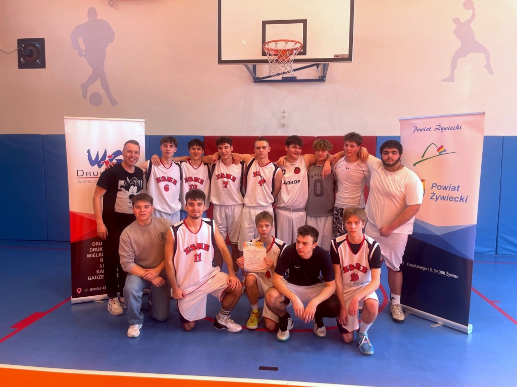W finałach zawodów rejonowych koszykówki chłopców zmierzyli się mistrzowie powiatu żywieckiego, bielskiego oraz czechowickiego. Nasza drużyna rozpoczęła turniej od niezwykle wyrównanego starcia z mistrzami Bielska-Białej, które dzięki bardzo dobrej grze reprezentantów ZSM-E zakończyło się zwycięstwem 46-41.