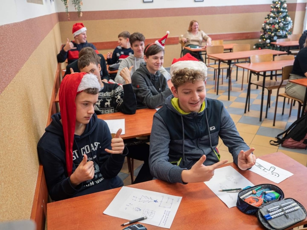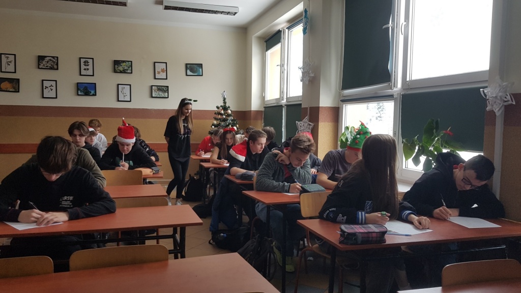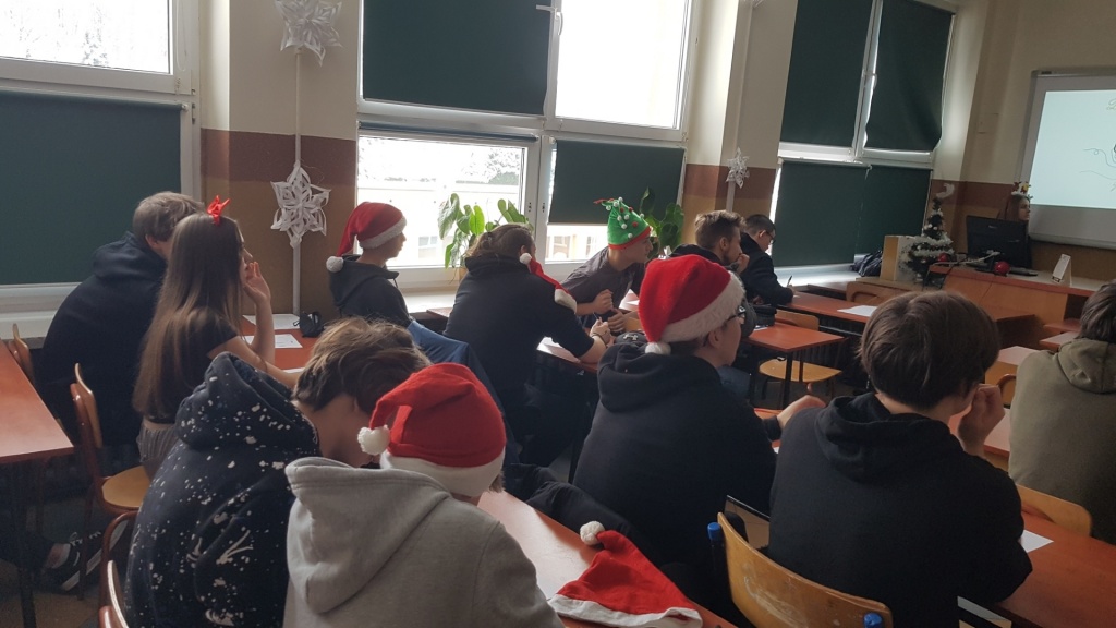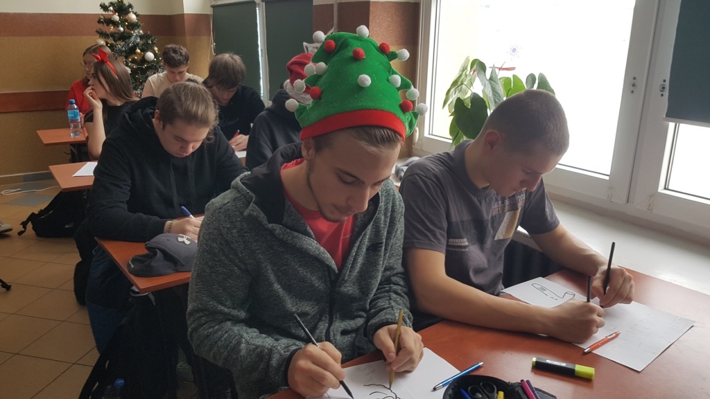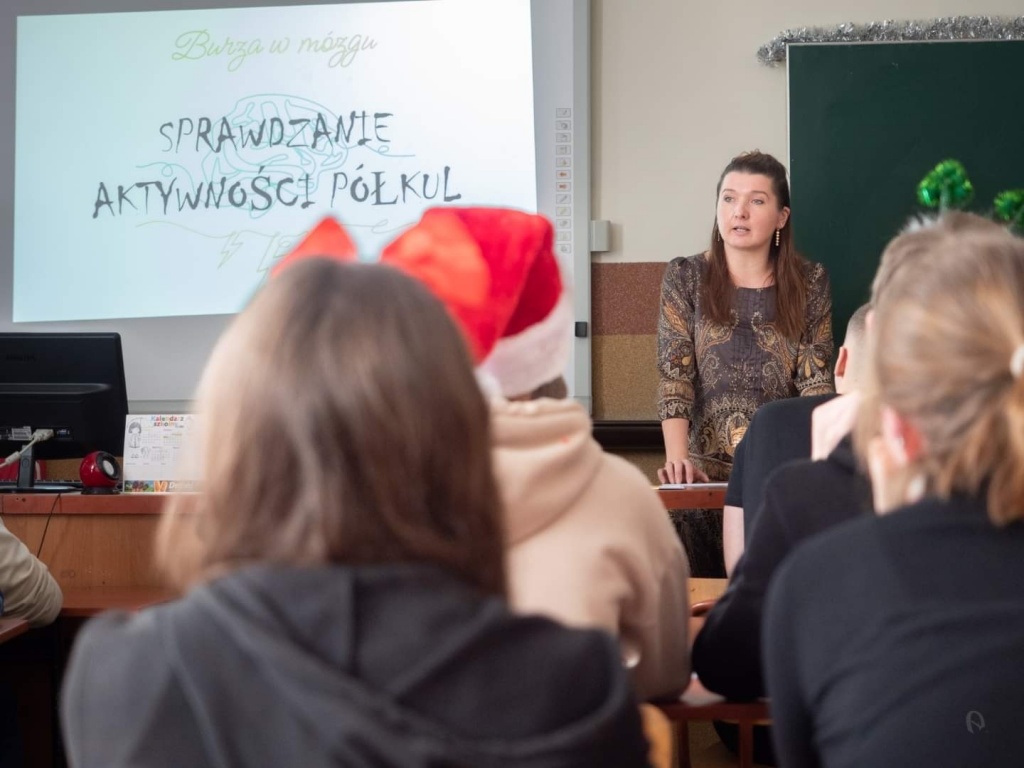 HO, HO, HO…. Boże Narodzenie zbliża się wielkimi krokami i w naszym szkolnym projekcie zrobiło się świątecznie…. Klasy 1eT oraz 2cT wzięły udział w wyjątkowych, nigdy wcześniej nie przeprowadzonych warsztatach, w trakcie których uczniowie poznali techniki szybszego zapamiętywania treści, ćwiczyli koncentrację oraz sprawdzali, która półkula mózgu u nich dominuje. Wszystkie ćwiczenia były powiązane z tematem zbliżających się Świąt. Uczniowie między innymi zapamiętywali jak najwięcej produktów, które trzeba kupić na święta, sprawdzali spostrzegawczość i refleks śledząc drogę renifera, w nietypowy sposób śpiewali znane kolędy, dekorowali choinkę w wyobraźni i rozwiązywali świąteczne zagadki słowne. Zajęcia poza zdobyciem nowych umiejętności i poznaniem możliwości swojego mózgu dostarczyły uczniom dużo dobrej zabawy.