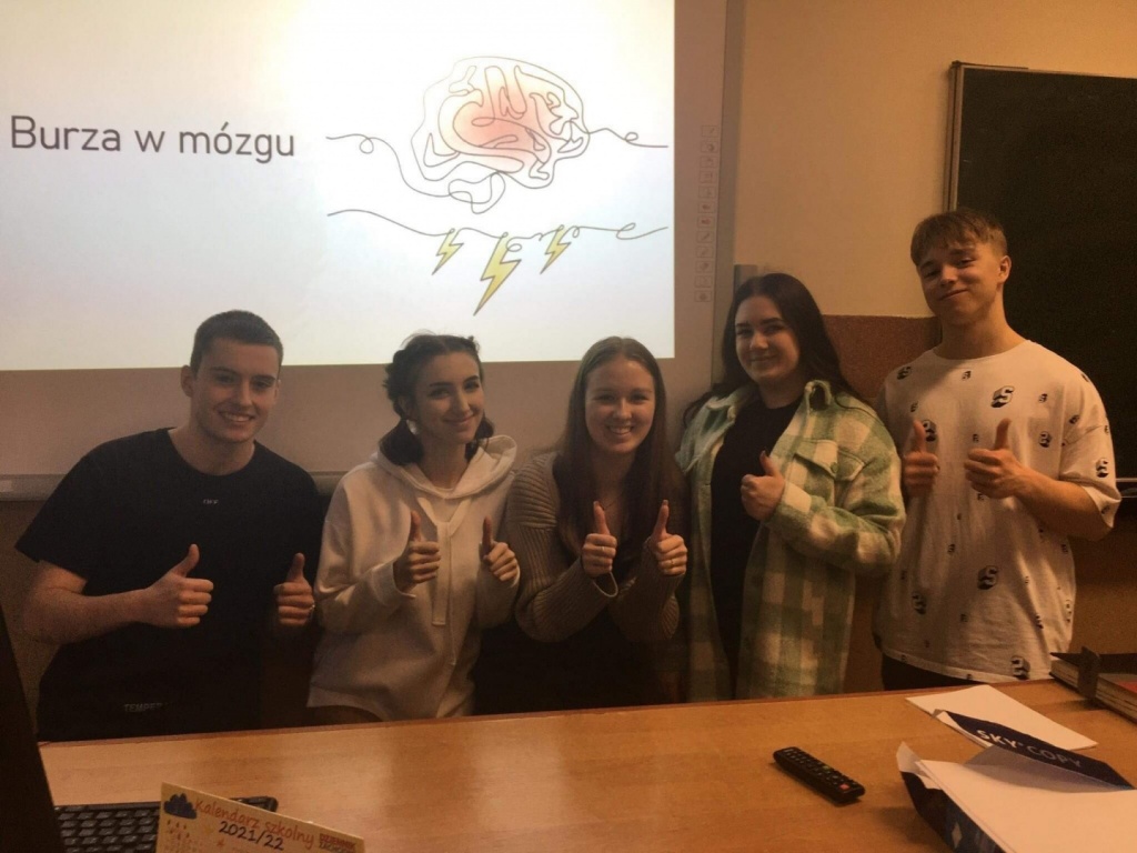 Projekt „Burza w mózgu” powstał w bieżącym roku szkolnym, a jego celem jest zachęcenie młodzieży do nauki poprzez pokazanie metod, które pozwalają na szybsze i trwalsze zapamiętywanie treści. Pomysł na projekt powstał ze względu na długotrwałą naukę zdalną podczas której większość uczniów zniechęciła się do samodzielnego przyswajania wiedzy i pomimo powrotu do nauki stacjonarnej mają problem z efektywnym uczeniem się.