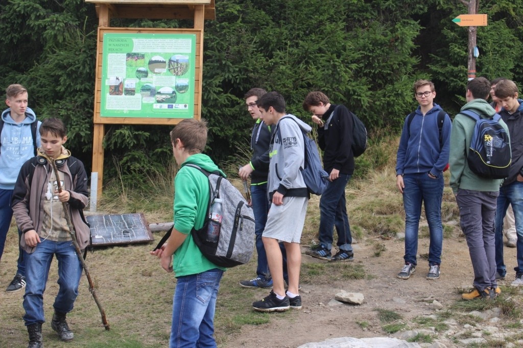 W dniu 24 września klasa 1 d technikum wybrała się na swoją pierwszą, integracyjną wycieczkę klasową. Wędrówkę po najpiękniejszych halach Beskidu Żywieckiego rozpoczęliśmy w Złatnej Hucie skąd czarnym szlakiem doszliśmy na Halę Rysiankę. Na szczycie Rysianki mocno zmarzliśmy bo wiał zimny wiatr. Zjedliśmy śniadanie i ruszyliśmy do Żabnicy. Po drodze minęliśmy urocze schronisko na Hali Lipowskiej oraz Halę Redykalną. Podczas zejścia na Halę Boraczą było już słonecznie i mogliśmy zapalić ognisko, zjeść pyszne kiełbaski a w schronisku wyśmienite jagodzianki. Całą wycieczkę prowadził przewodnik Pan Robert Słonka, który umilał podróż ciekawymi opowieściami dotyczącymi Beskidu Żywieckiego. Opiekunami wycieczki byli: wychowawczyni klasy I dT mgr inż. Anna Magnuszewska-Mojżesz oraz mgr inż. Krzysztof Tabacki.
