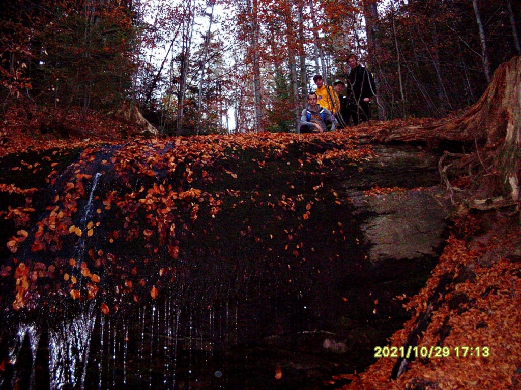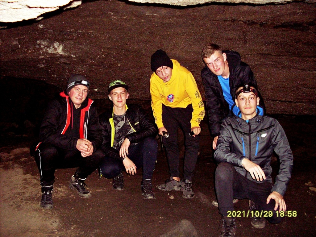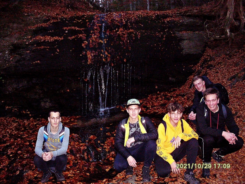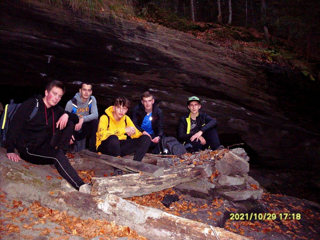 W miniony piątek, 29 października, członkowie naszego szkolnego Klubu Górskiego, a zarazem miłośnicy mocnych wrażeń, udali się tym razem na wycieczkę w głąb lasów Beskidu Małego. Wyjątkowości owej wyprawie dodawał fakt, iż 4 km powrotny odcinek drogi, odbywał się w godzinach wieczornych, w całkowitej ciemności rozświetlanej jedynie przez nasze latarki. Nasz cel, tj. Jaskinia Komonieckiego położona na południowych stokach Łamanej Skały (929 m. n.p.m.), to największa grota erozyjna w polskich Karpatach fliszowych (15 m długości i 115 m2 powierzchni). Grota zimą słynie ze wspaniałego lodospadu oraz lodowych stalaktytów. Jaskinia posiada swoją bogatą historię, gdyż jak donoszą opowieści, w czasie II w. św. chronili się tutaj partyzanci Armii Krajowej. Wspominał o niej także wójt żywiecki, Andrzej Komoniecki już w 1704 r. Tuż obok, na Potoku Dusica, znajduje się wodospad „Dusiołek” – największy w całym Beskidzie Małym, mający ponad 4 m wysokości i 6 m szerokości.