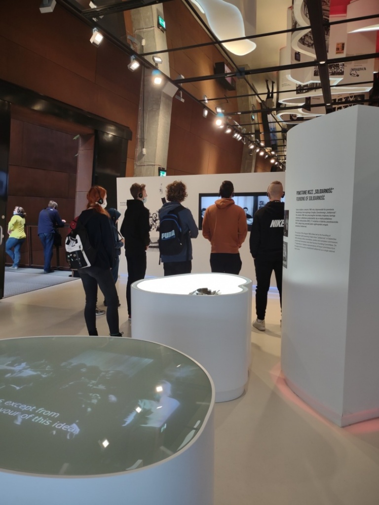 Ostatni dzień to powrót do miejsca, od którego rozpoczęliśmy wycieczkę. Po przekroczeniu bramy Stoczni Gdańskiej odwiedziliśmy Europejskie Centrum Solidarności. Tu szczególną uwagę zwróciły zgromadzone w salach pamiątki oraz filmy poświęcone historii Solidarności oraz zmianom, jakie dokonały się pod jej wpływem w Europie.