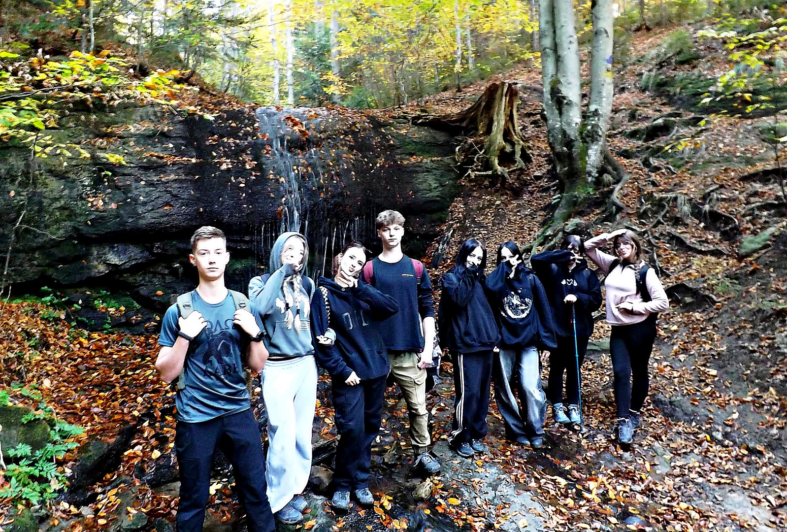 W piątek, 18 października, młodzież z klas licealnych naszej szkoły, a zarazem miłośnicy mocnych wrażeń, zgromadzili się w pobliżu spowitej mrokiem górskiej groty, aby posłuchać przerażających opowieści przy ognisku. Wyjątkowości owej wycieczce dodawał fakt, iż blisko 4km powrotny odcinek drogi, odbywał się w całkowitej ciemności rozświetlanej jedynie przez nasze latarki. Cel naszej wycieczki, tj. Jaskinia Komonieckiego położona w Beskidzie Małym, na południowych stokach Łamanej Skały (929 m. n.p.m.), to największa grota erozyjna w polskich Karpatach fliszowych. Grota zimą słynie ze wspaniałego lodospadu oraz lodowych stalaktytów. Jaskinia posiada także bogatą historię, gdyż jak donoszą opowieści, w czasie II w. św. chronili się tutaj partyzanci Armii Krajowej. Tuż obok, na Potoku Dusica, znajduje się ponadto wodospad „Dusiołek” – największy całym w Beskidzie Małym.