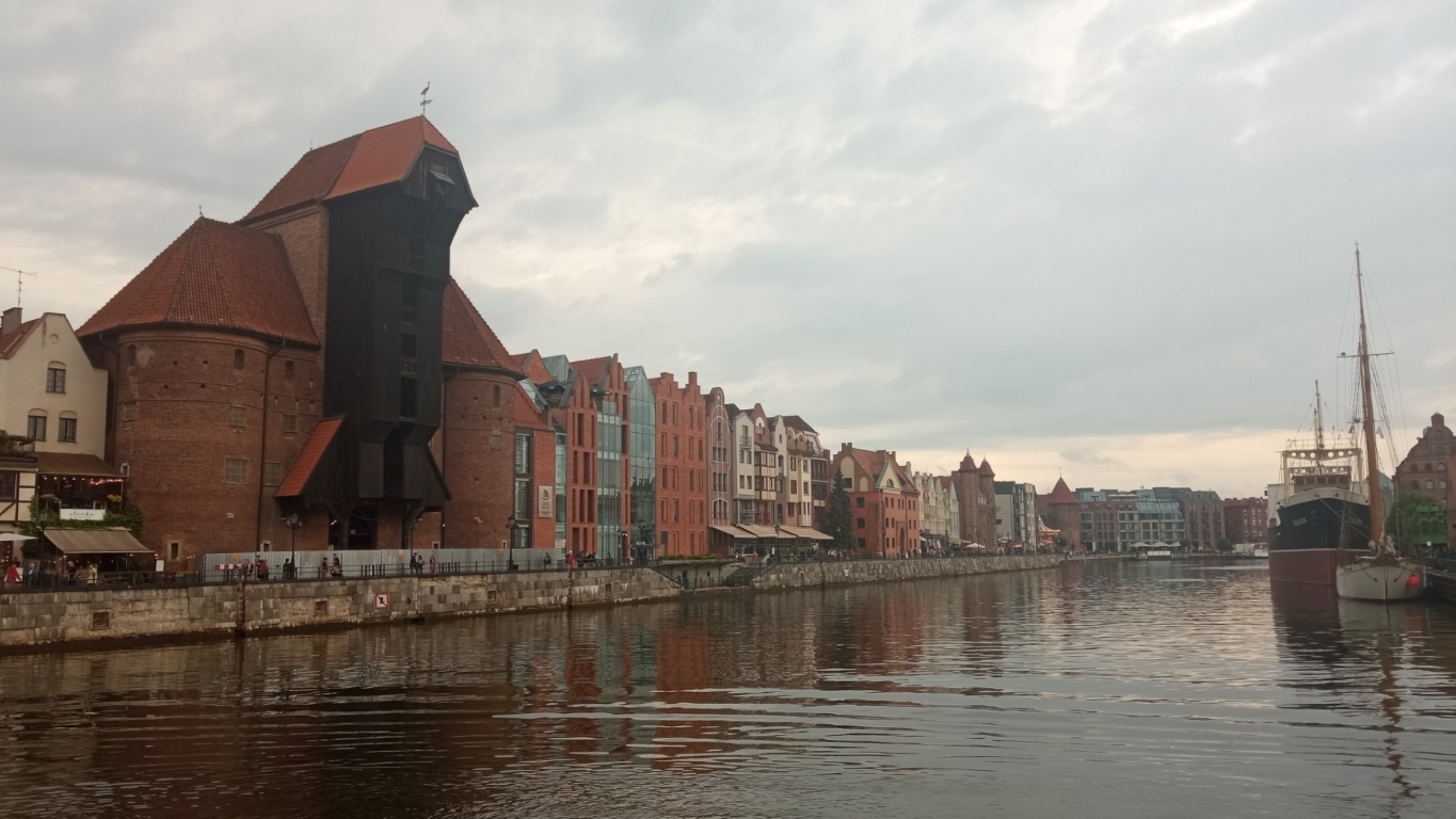 Następnie skierowaliśmy się na Długie Pobrzeże - nadwodny deptak ciągnący się wzdłuż zachodniego brzegu Mołtawy. Znajdował się tu port dawnego miasta. Wzdłuż ulicy usytuowane są charakterystyczne dla architektury Gdańska bramy wodne: Krowia z XIV w., Chlebnicka z XV w., Mariacka z XV w., Św. Ducha, odbudowana w latach 90-tych, oraz słynny Żuraw - ikona Gdańska - będący największym średniowiecznym dźwigiem portowym Europy. To idealne miejsce na spacery pozwalające obserwować przepływające statki.