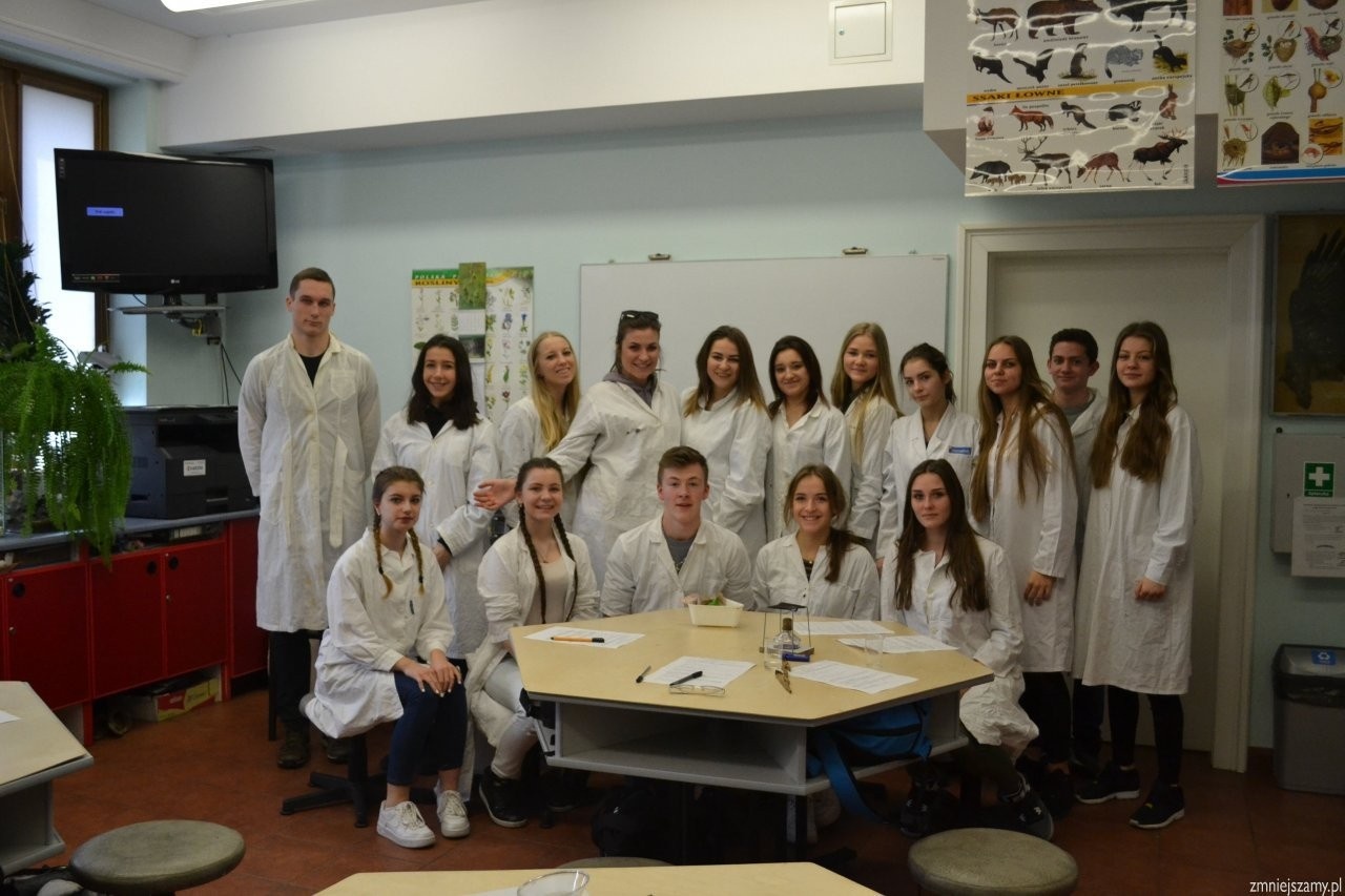 17 marca uczniowie klasy 1aLO wzięli udział w tematycznych wykładach organizowanych w katowickim Pałacu Młodzieży. Podzieleni na dwie grupy, mogliśmy eksperymentować w laboratorium i próbować swoich sił w wykrywaniu białek. Następnie wysłuchaliśmy krótkiego wykładu o tkankach roślinnych, po czym przeszliśmy do zajęć praktycznych- obserwowaliśmy wcześniej omawiane tkanki pod mikroskopami. Po zajęciach w Pałacu Młodzieży przenieśliśmy się do galerii handlowej, gdzie oglądaliśmy wystawę "BODY WORLDS VITAL"- czyli najczęściej odwiedzaną na świecie naukową wystawę spreparowanych ludzkich ciał. Wywarło to na nas ogromne wrażenie, a zarazem dostarczyło wiedzy o ludzkim ciele. Wycieczka, którą zoorganizowała pani Anna Sawicka bardzo nam się podobała, szczególnie z racji tego, że pomogła nam poszerzyć wiedzę z zagadnień realizowanych na profilu biologiczno-chemiczny, na który uczęszczamy.